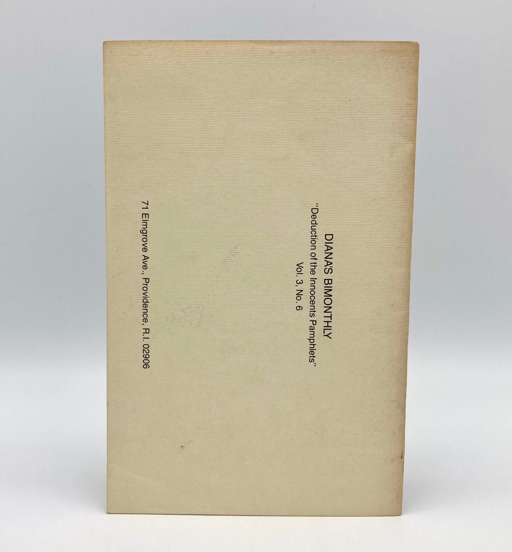 Book Measures 5.5 x 8.5 inches. Stapled wrappers. Diana’s Bimonthly Vol. 3, No. 6. Small pamphlet consisting of one notebook entry from Weiner dated 'Sun June 9'. Published in an edition of 300 copies, this being hand-numbered 41. Very Good showing faint rubbing, and one small faint crease to back cover. A scarce title.