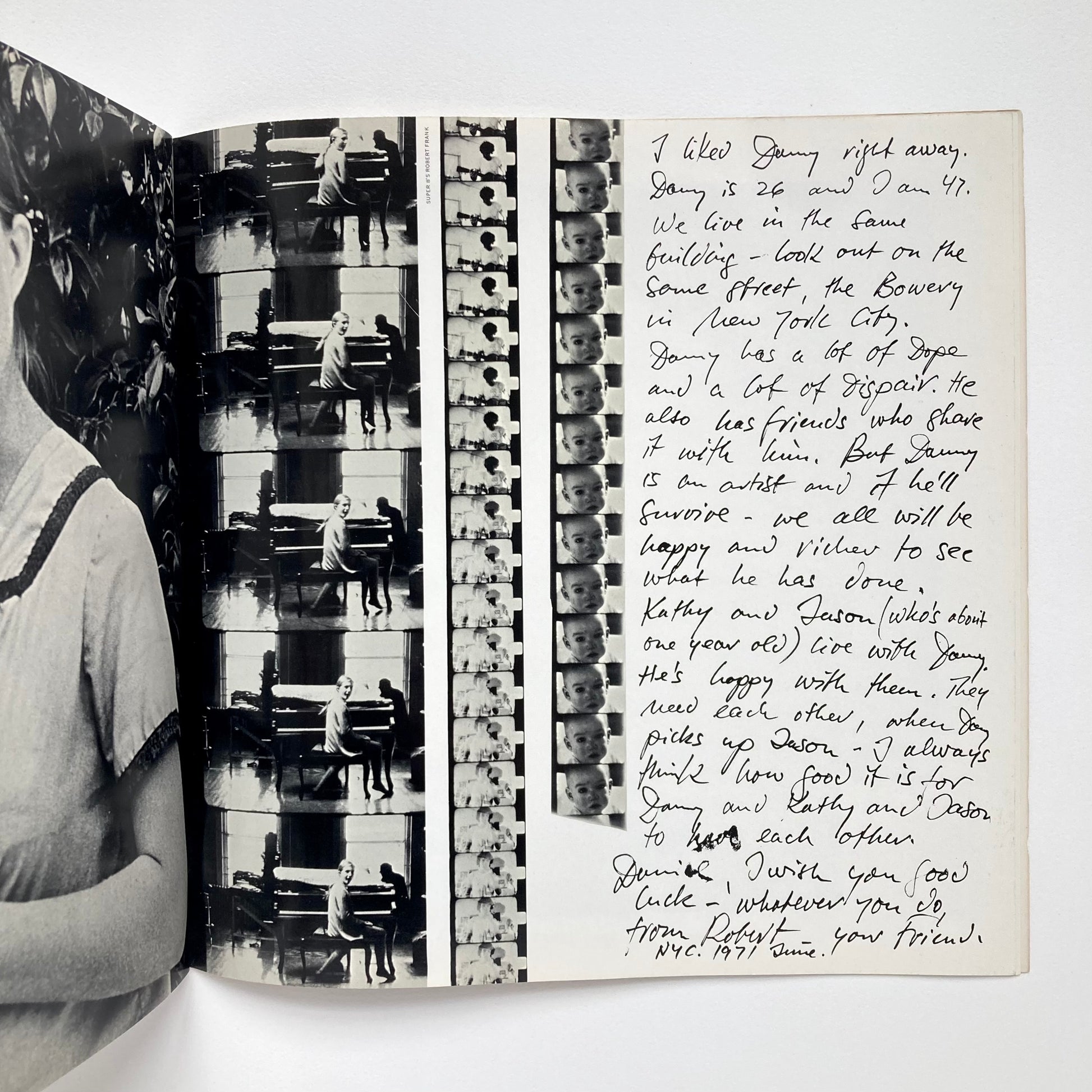 Book measures 10 x 10 inches. Stapled wrappers. Seymour's only published book, and the the first title from Ralph Gibson's Lustrum Press. B&W photographs accompanied by Seymour's writing (handwriting) throughout the text. This book holds the feel of something close to a photo album 'scrapbook', and published in 1971, predates a genre which would later take hold and become commonplace. Seymour assisted Robert Frank in his film work, and also fronted the money to publish Larry Clark's first book Tulsa. A Loud Song is dedicated to Seymour's father, and chronicles his family life, personal travels, and his involvement in the counterculture scene. Along with photography, Seymour also made a number of 16mm films. Some of the photographs in this volume were taken alongside, most notably of Flamenco musicians in Spain related to his film Flamencologia.