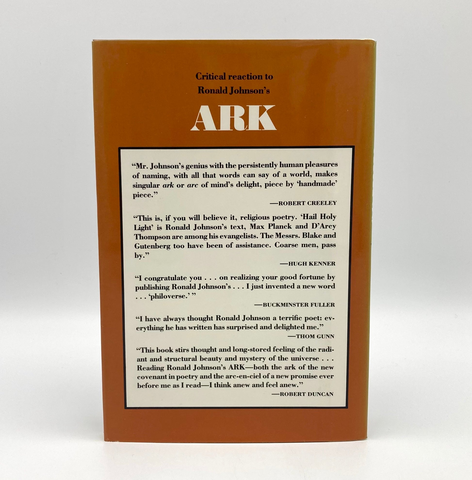 Book measures 5.5 x 8.25 inches. The second section of Johnson's epic long poem Ark, which was completed in four parts. This edition in hardcover is not often seen. Near Fine in boards with cloth spine. Binding is solid. Dust jacket shows light sunning to spine.
